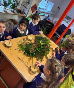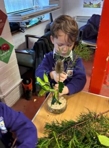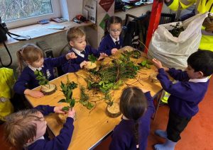 🌱 The children gathered plenty of freshly cut foliage and headed indoors to create our own table decorations.