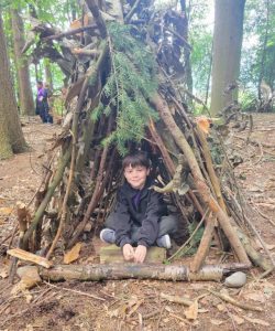 They’ve had a wonderful day living life as Stone Age people – dressing up, exploring fascinating Stone Age objects, building dens from wood and leaves, and even making our own Stone Age tools!